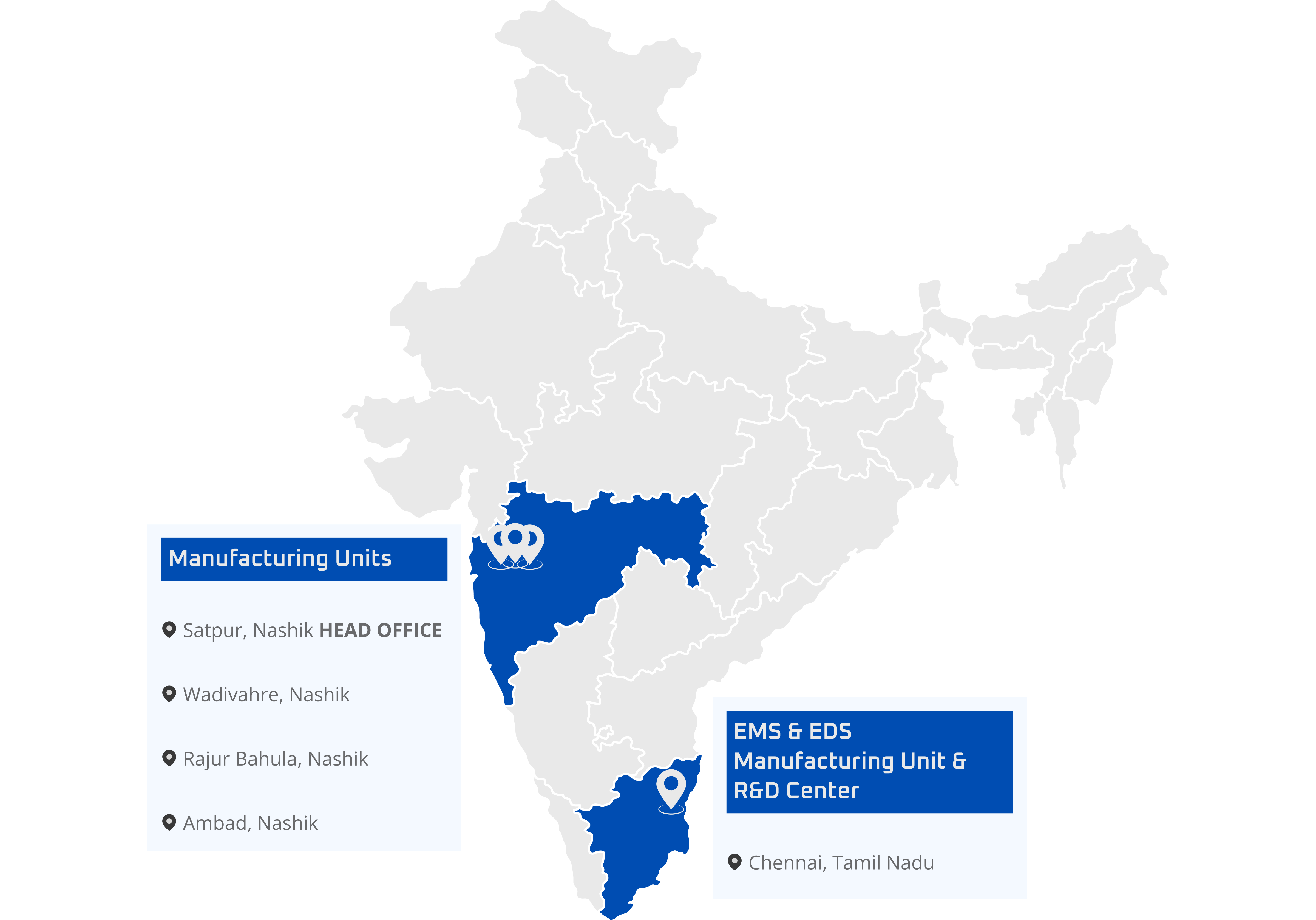 For India’s growing electronics industry, we operate a large-scale electronics manufacturing facility designed to meet the immediate and evolving needs of PCB A Controllers, mobility systems, and energy solutions. Focus is on products and devices that currently rely on imported electronics, enabling us to localize production and capture these market segments. Supported by our advanced Technology Design vertical, we deliver high-quality, cost-competitive electronic solutions.