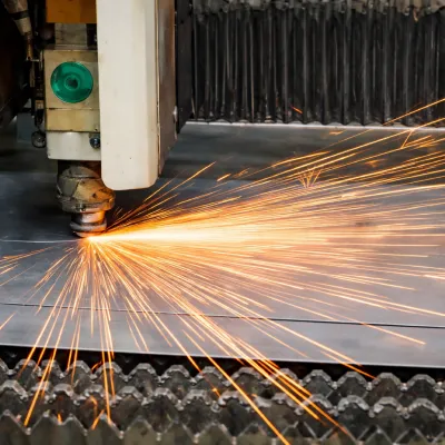 Precision cut steel sheets with advanced laser cutting machine for various key tank parts like shell, dome, dish end, and flanges.