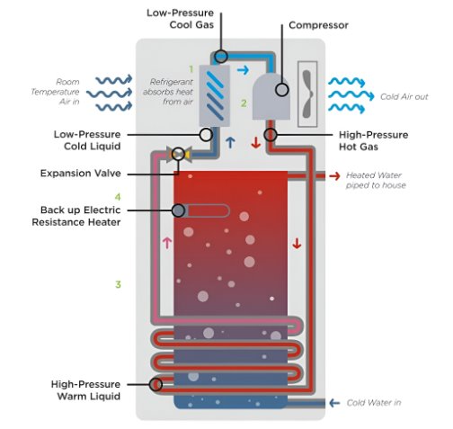 - Conventional water heaters use electrical resistance to heat water, resulting in a Coefficient of Performance (COP) of ~ 1.0.